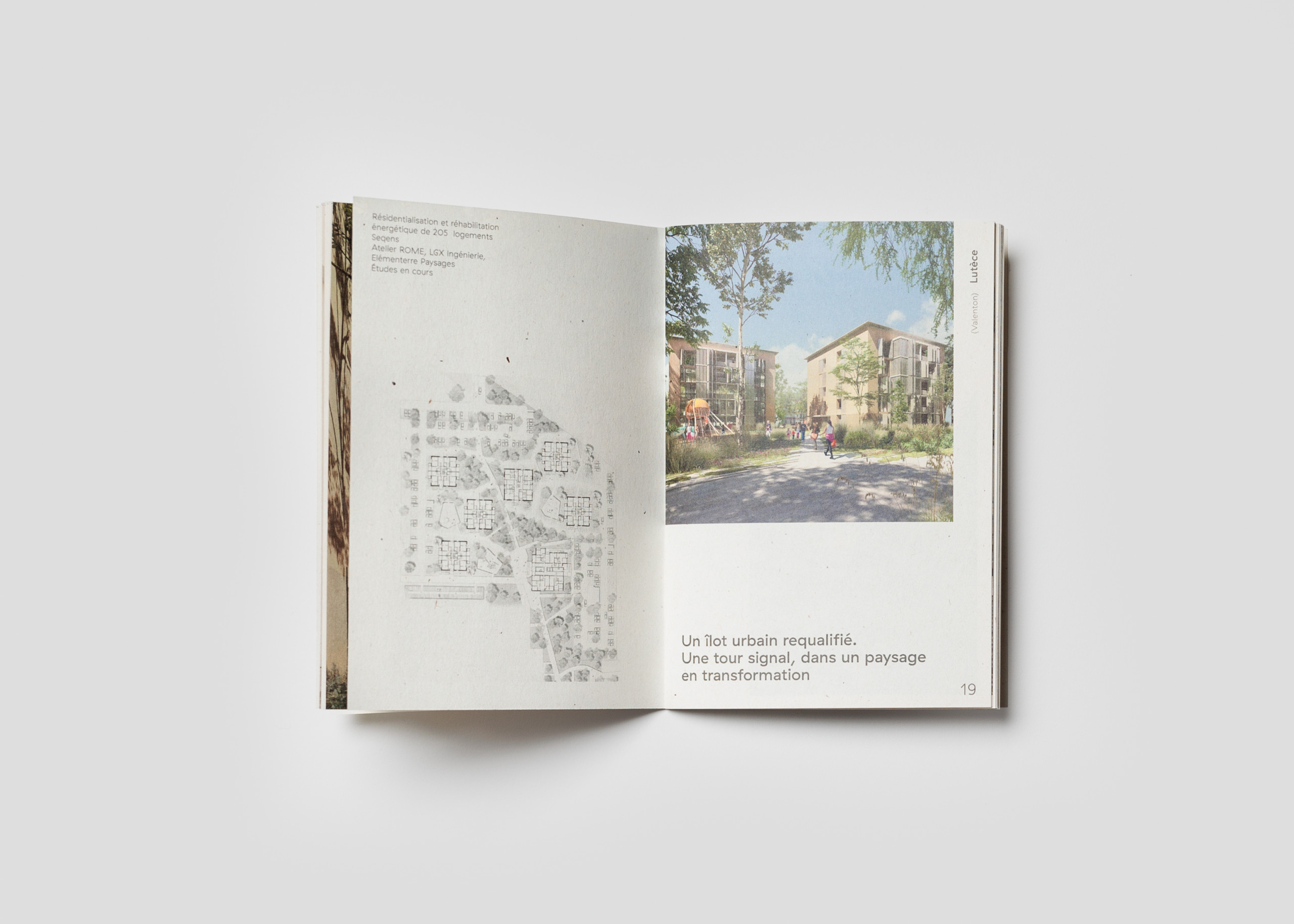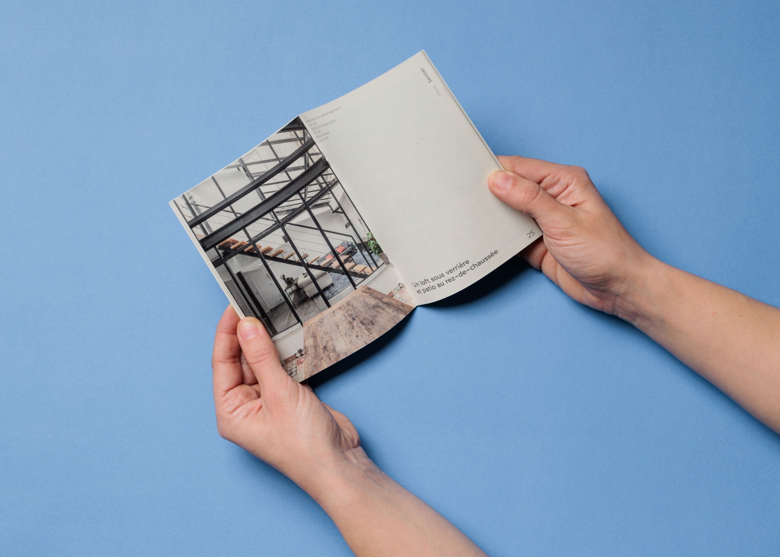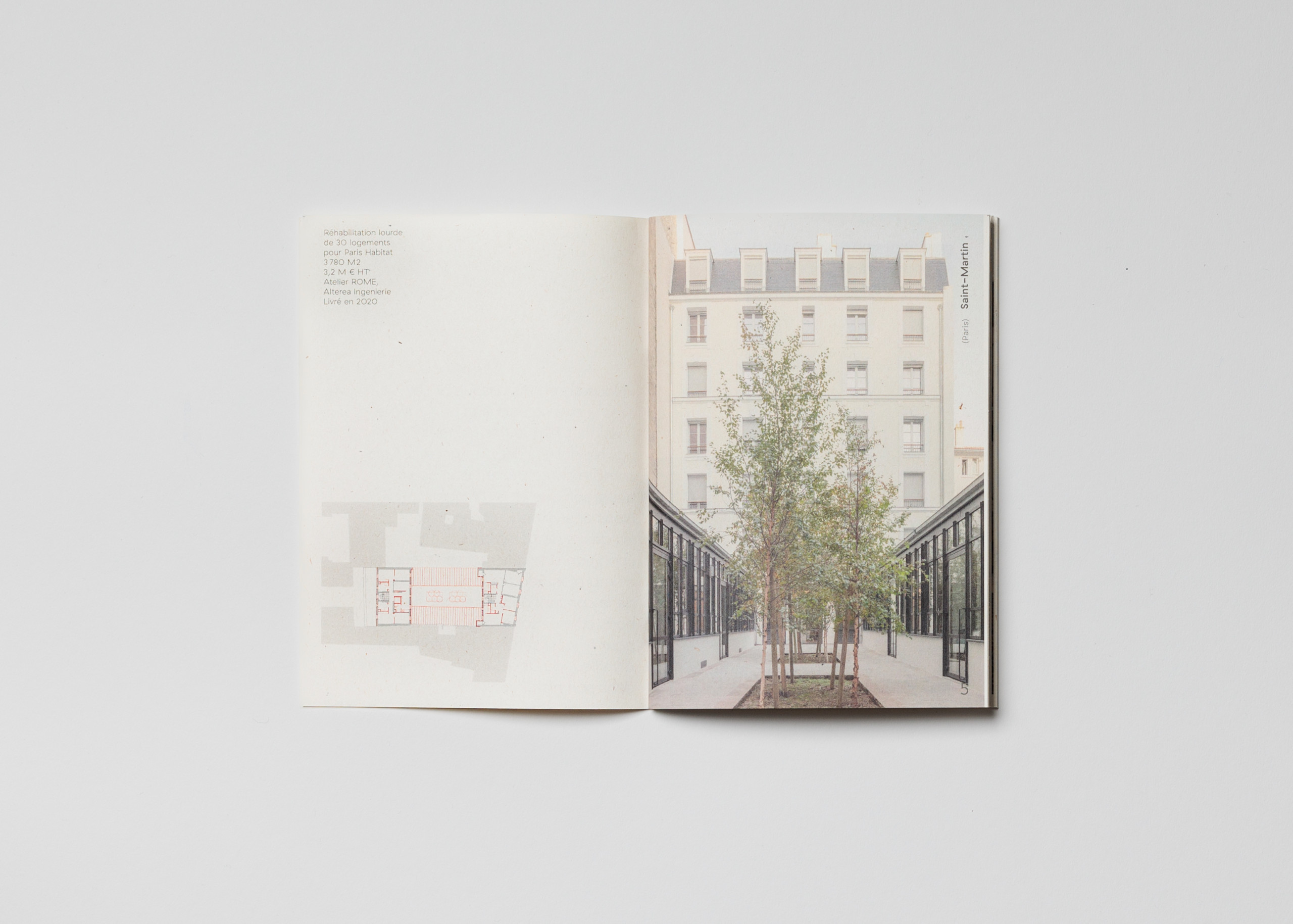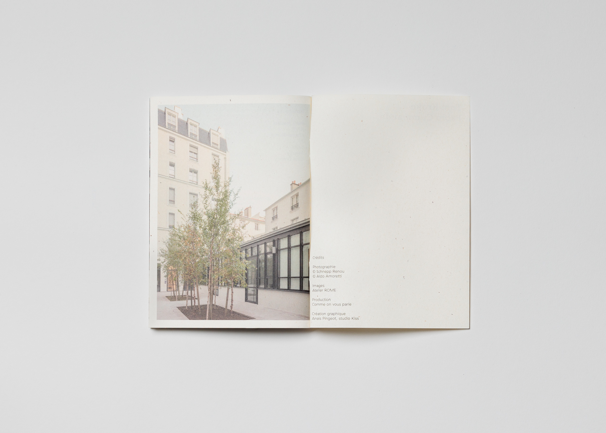 Pour l’Atelier Rome, Comme on vous parle a d’abord produit un livret de projet au format A6 avec la graphiste Anaïs Pingeot (Studio Kiss). Compact et élégant, ce support met en valeur l’architecture de l’agence dans un format facile à diffuser.