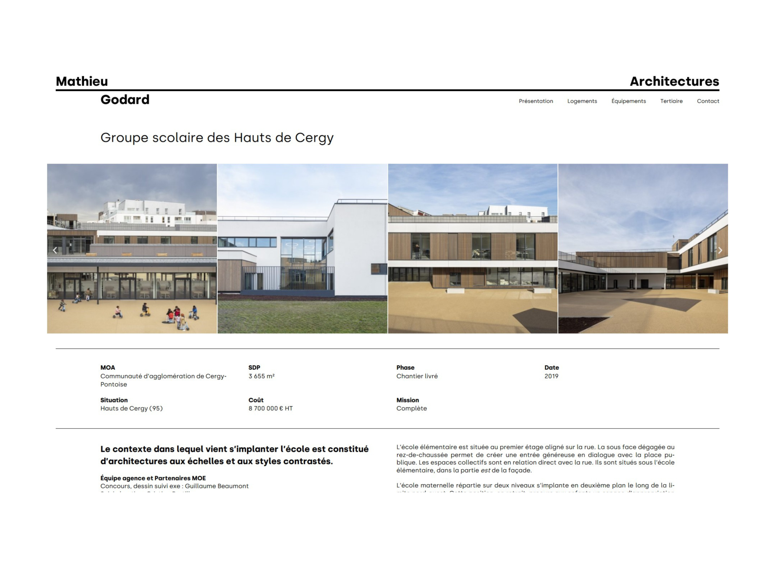Pour l’agence Mathieu Godard Architectures, Comme on vous parle a accompagné la définition de son positionnement, la création de sa nouvelle identité visuelle, la production de son portfolio et de son site web. Installée en grande couronne parisienne, l’agence affirme une architecture où la ligne d’horizon dialogue avec l’intérieur et guide l’usager dans sa déambulation, en valorisant les qualités des paysages urbains complexes.