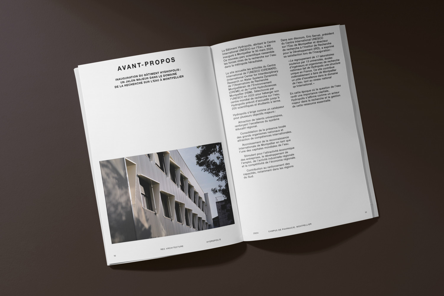Pour REC Architecture, Comme on vous parle a assuré la production d’un livret de projet sur Hydropolis, centre de recherche mondial de l’eau de l’UNESCO à Montpellier. La mission comprenait la coordination avec la graphiste Anaïs Pingeot (Studio Kiss), la coordination d’un photographe, la rédaction des textes et la sélection iconographique.