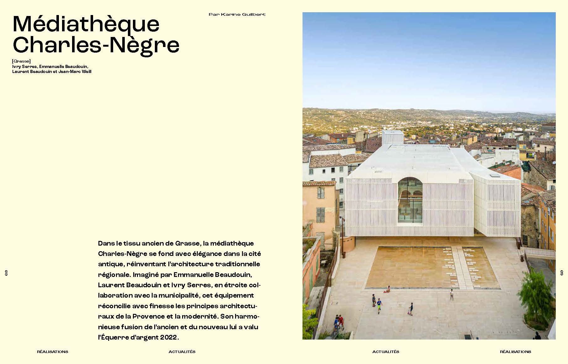 Article signé par Karine Guilbert, paru dans Archistorm n°127 reprenant des extraits du livre consacré à la médiathèque Charles Nègre de Grasse.